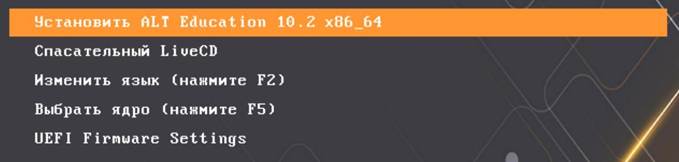 - После перезагрузки компьютера (а также при последующих загрузках) для запуска ОС «Альт Образование» выберите соответствующий пункт «ALT Education …».