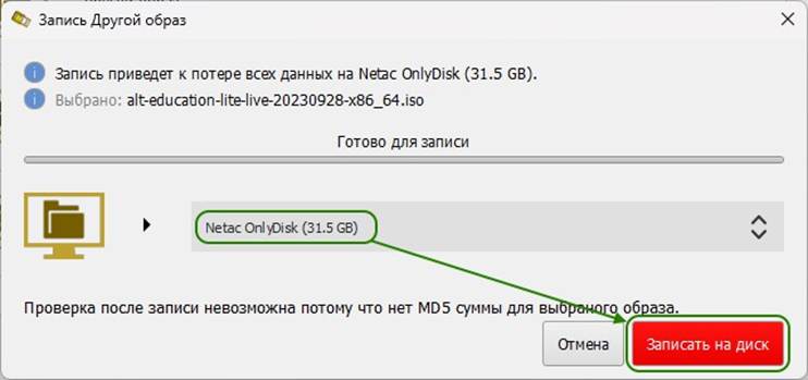 Для создания установочного флеш-накопителя с ОС «Альт Образование»: